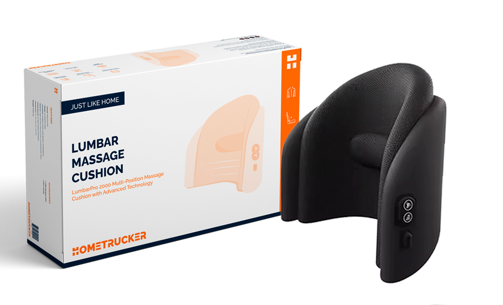 Disfruta de un masaje lumbar mientras conduces con el cojín masajeador de HomeTrucker LumbarPro 2000. Ideal para camioneros, conductores de autocaravana y autobús.