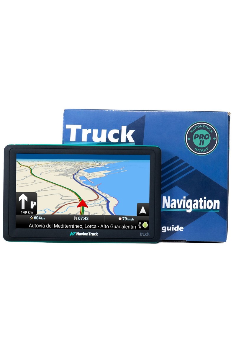 El sistema de navegación GPS Navion X7 Truck PRO Smart es un dispositivo portátil de 7 pulgadas con pantalla multitáctil que le permite pellizcar la pantalla con dos dedos. Cuenta con WiFi y Bluetooth para descargar aplicaciones. Su base de datos de empresas, almacenes y zonas de carga permite ajustar las dimensiones del vehÃculo y el ADR, ayudando a los conductores de vehÃculos grandes a encontrar la mejor ruta y evitar obstáculos. Además, ofrece información sobre estacionamiento y zonas de descanso en la ruta para mejorar la eficiencia y ahorrar tiempo y dinero en la conducción. Además cuenta con GarantÃa de 3 años y actualizaciones de mapas gratis para toda la vida útil del dispositivo. NavionTruck dispone de piezas de repuesto pasados los años de garantia y como mÃnimo 10 años.