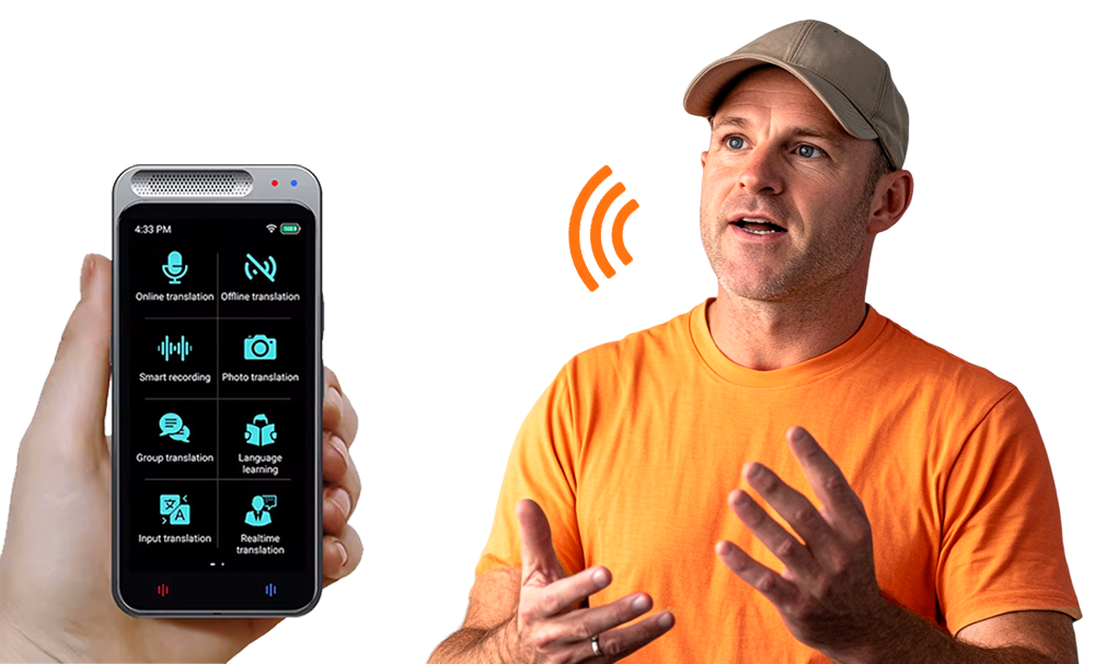 Comunícate en la ruta con cualquier persona de cualquier país con el traductor de idiomas por voz sin conexión multifuncional con Inteligencia Artificial de HomeTrucker.