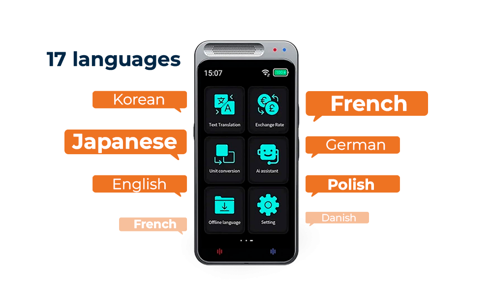 Traductor de Idiomas por Voz IA Multifunción Sin Conexión 17 Idiomas con Pantalla Táctil